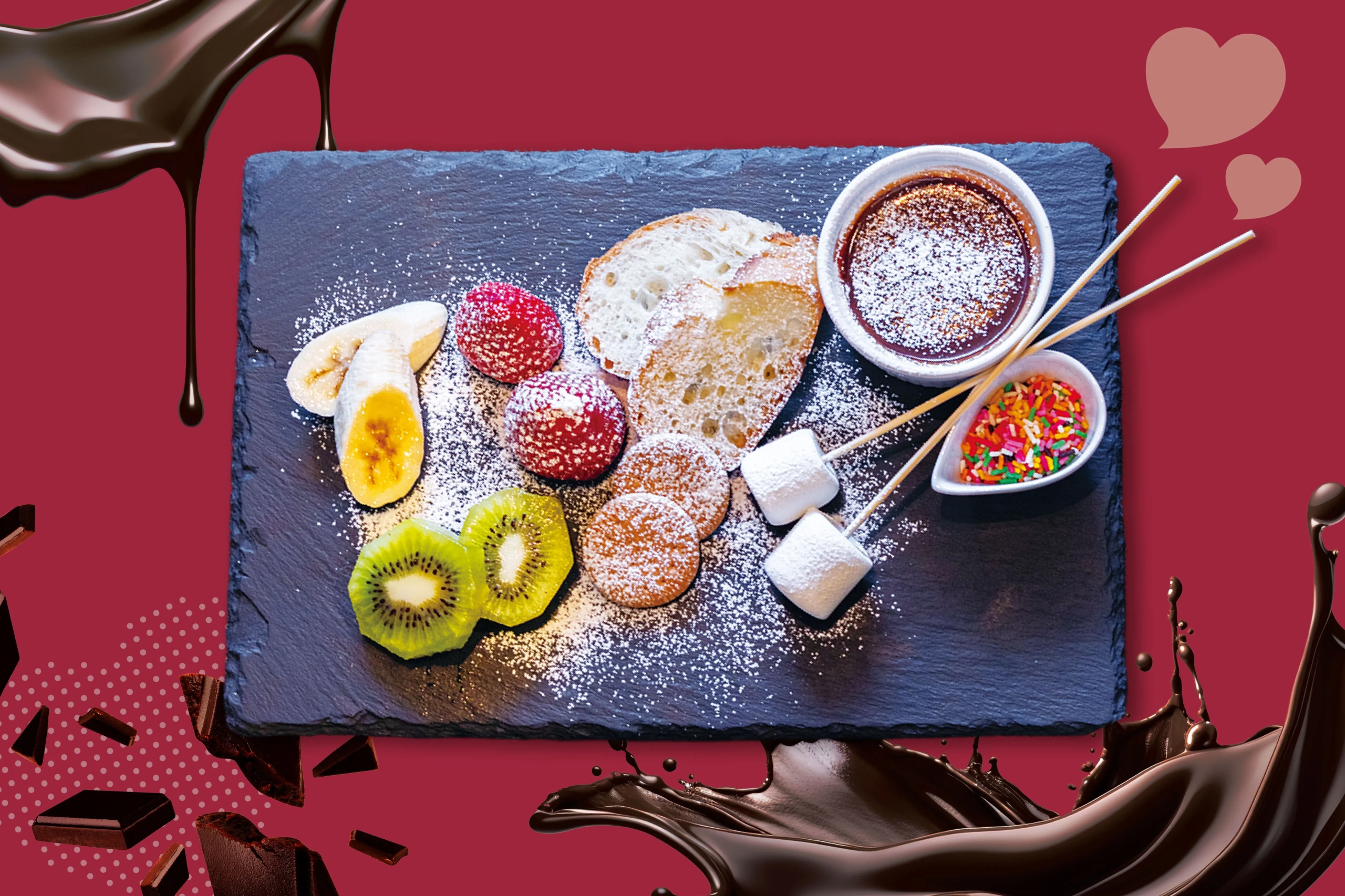 フルーツやパンをディップしながら、特別な日にふたりで楽しめるデザートです。