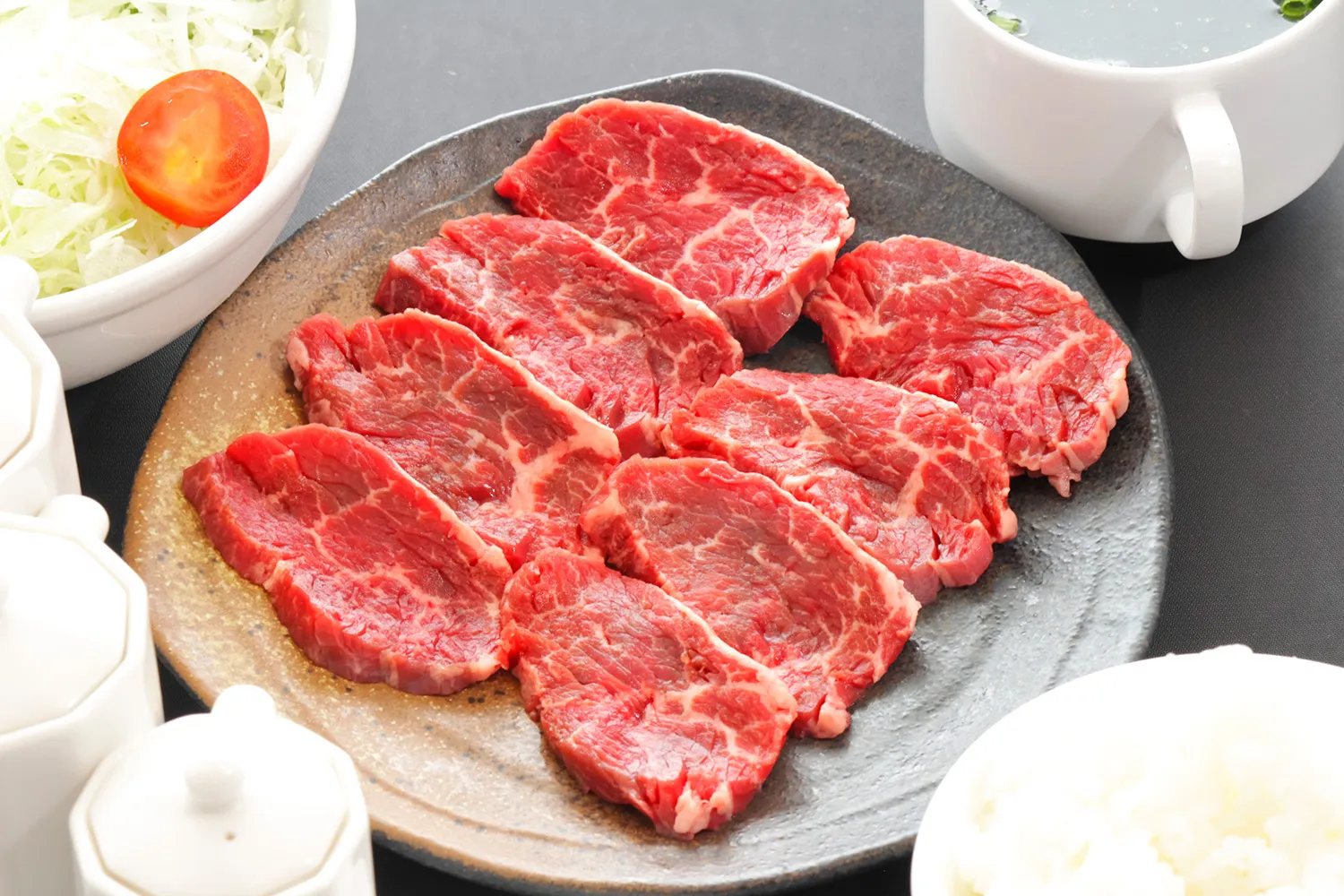 しゃぶカルビやハラミ、豚カルビ、鶏ももなどが一皿にまとまっており、いろいろな味わいをバランスよく楽しみたい方に向いています。