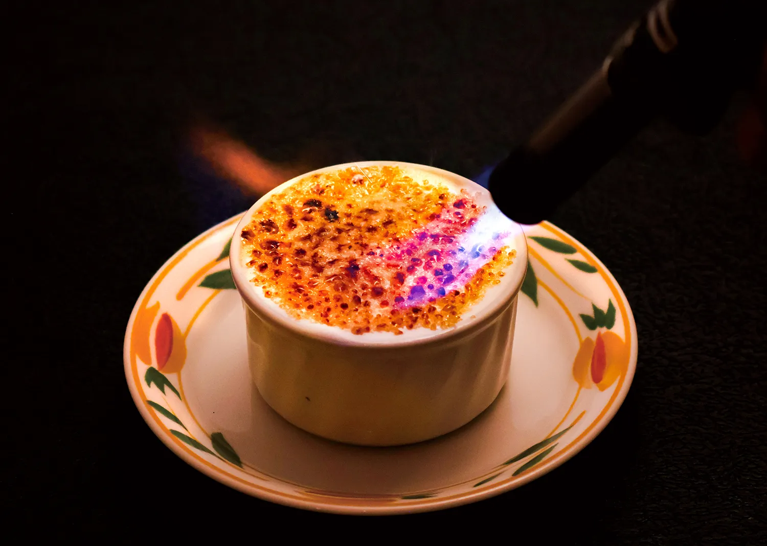種子島産の洗双糖を、目の前で炙って仕上げるスタイルで、ほんのり香ばしい風味とやさしい甘さが広がります。